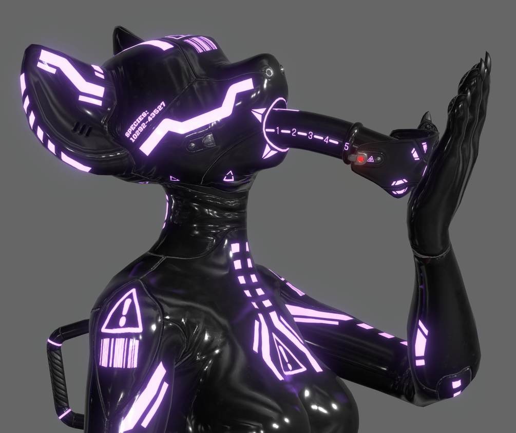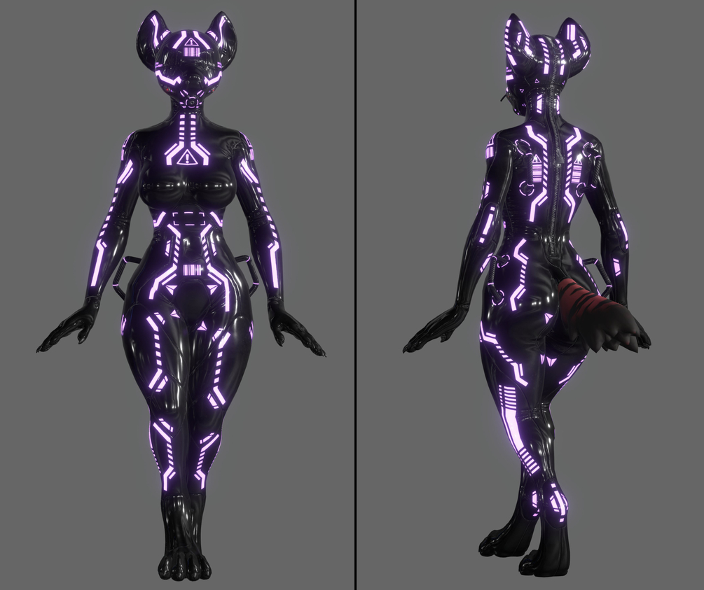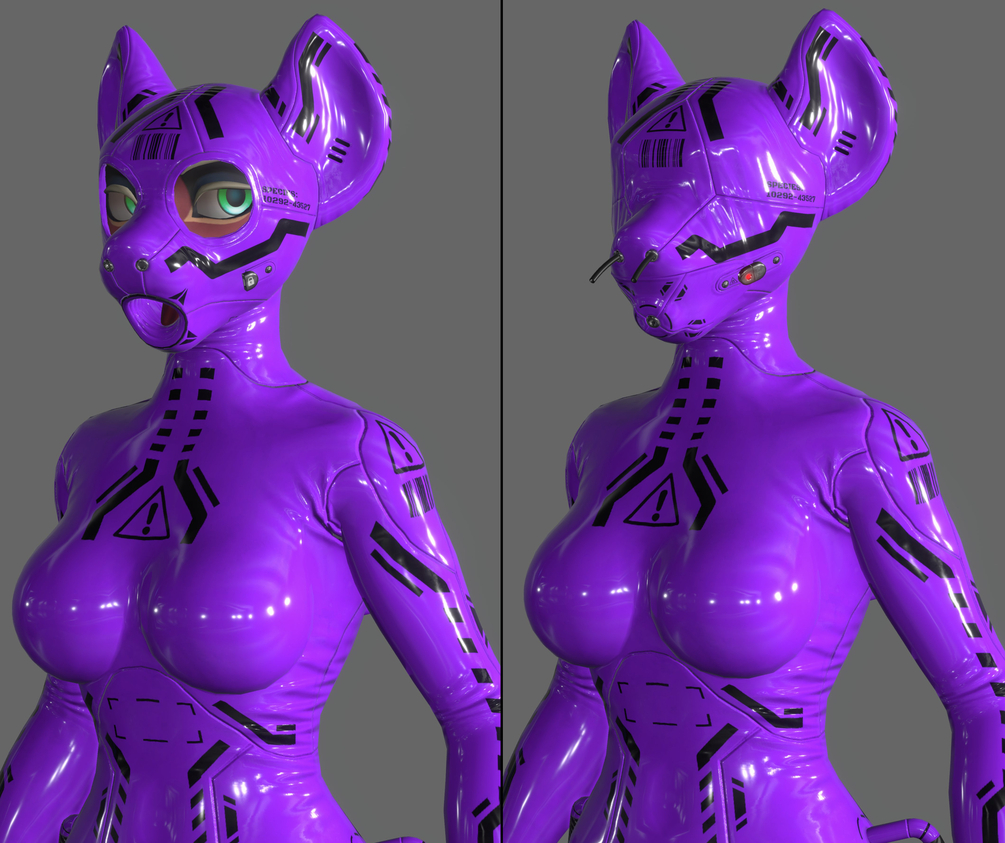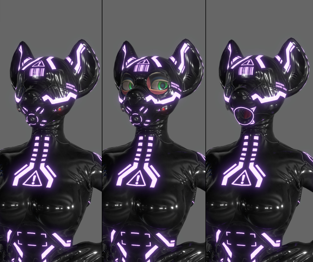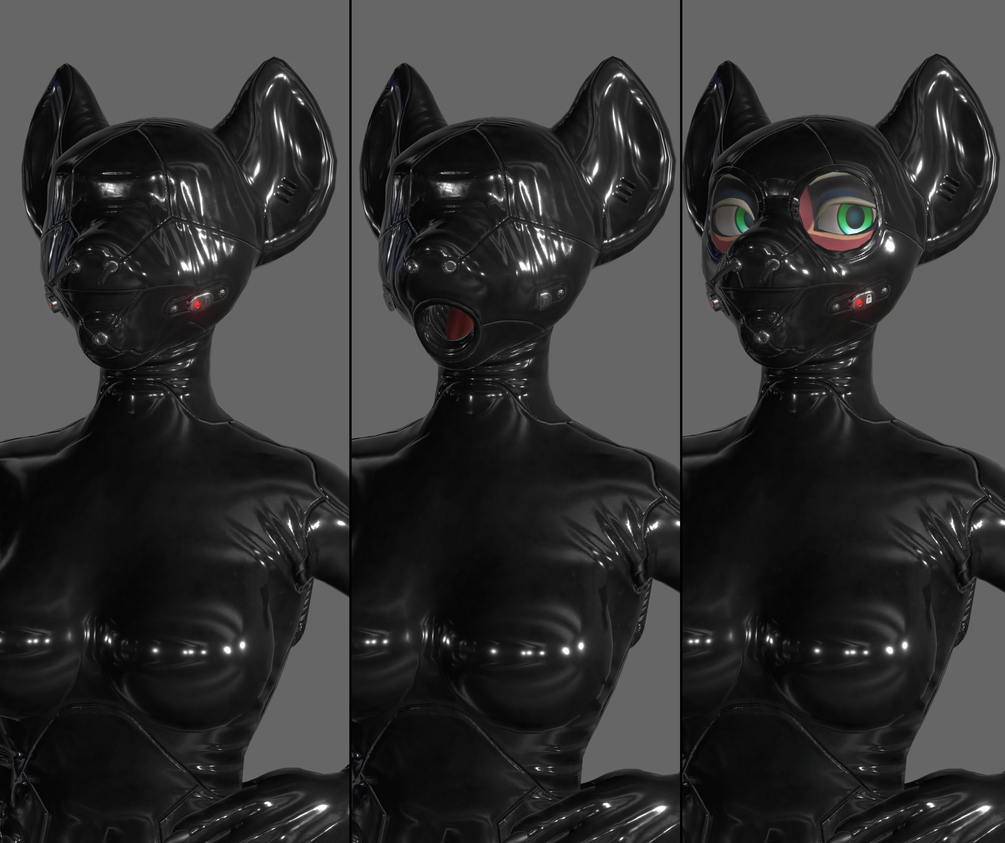 A 'Sequel' Latex Outfit & Hoods Made for Alber's Hyenid avatar ( https://alber.gumroad.com/l/Hyenid )