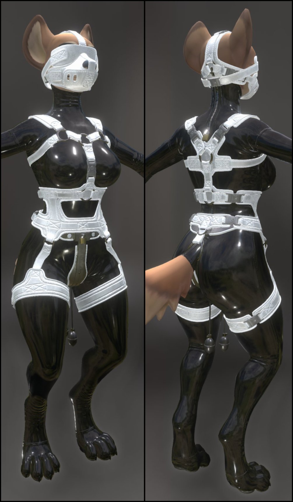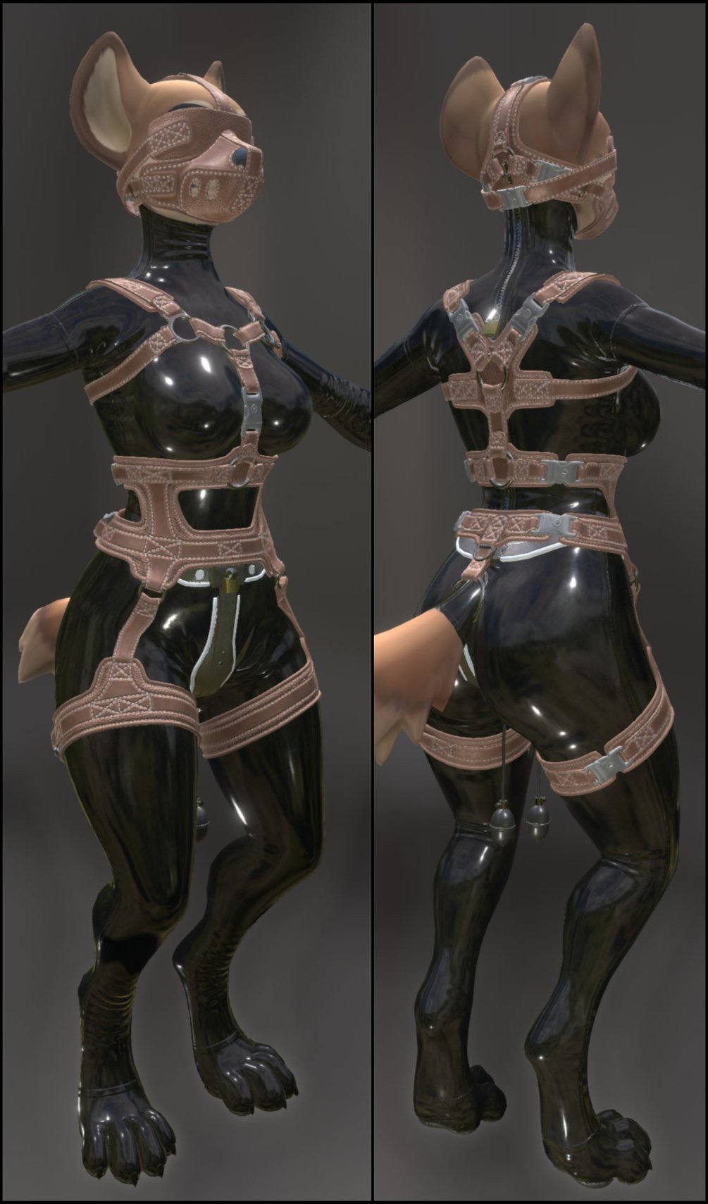 The harness is tailor-made for the original Hyenid body and is unlikely to fit 3rd-party Modded ones!