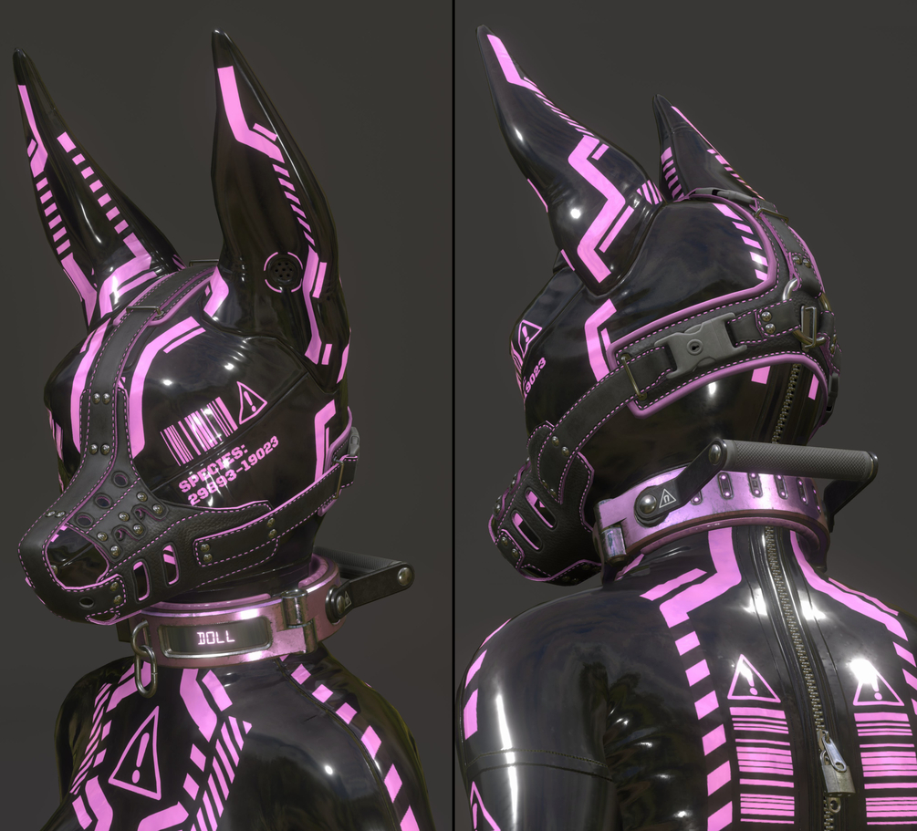 Latex outfit & muzzle seen on the images is from: https://bondutopia.gumroad.com/l/jlici & https://bondutopia.gumroad.com/l/sedllu