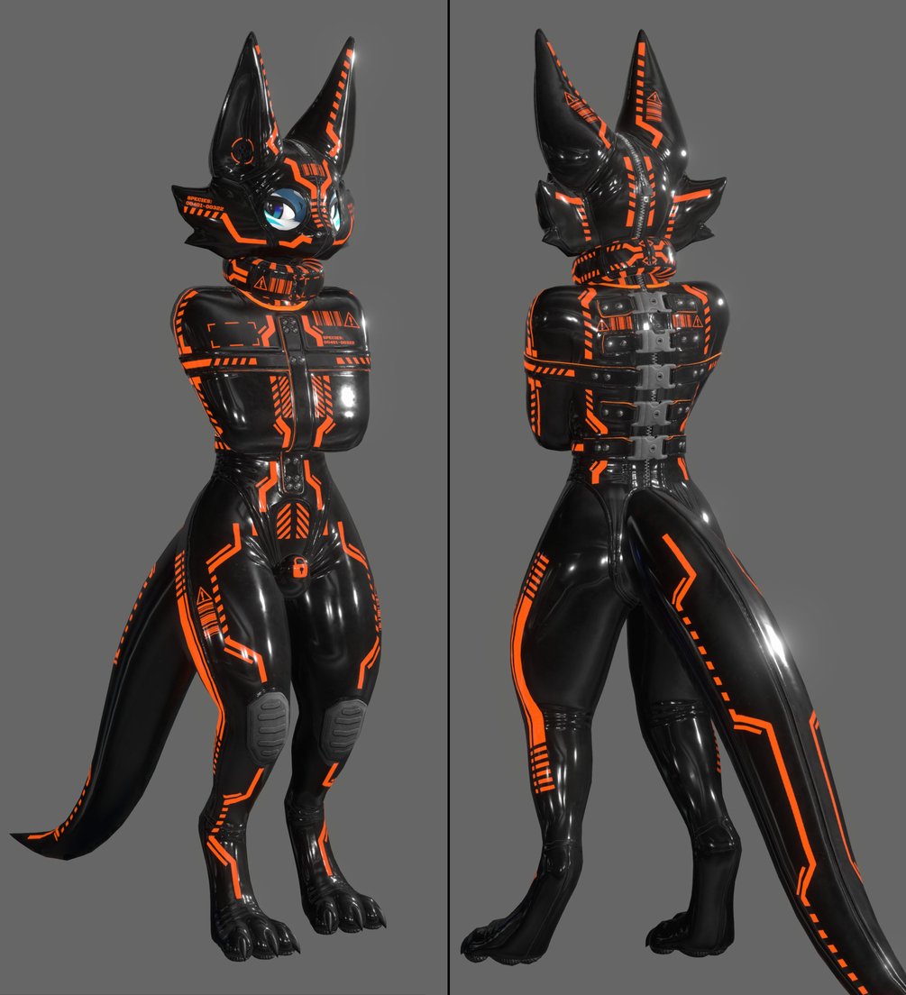 The 'jacket has a blendshape to let it overlap the back zipper on our latex outfit for the Novabeast available at: https://bondutopia.gumroad.com/l/pyeyn