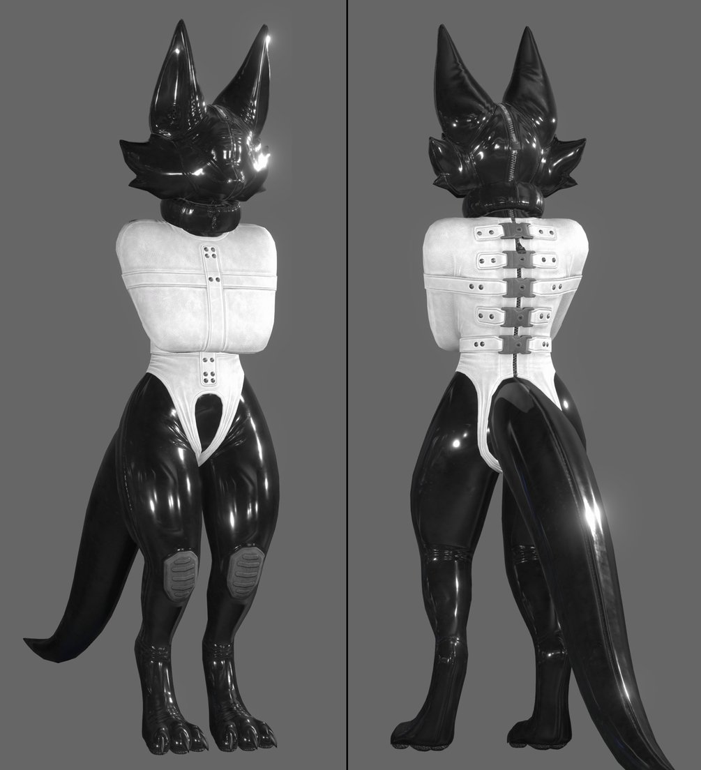 A sleeveless Straitjacket Onesie Made for Kittomatic's Novabeast avatar ( https://kittomatic.gumroad.com/l/Novabeast )
