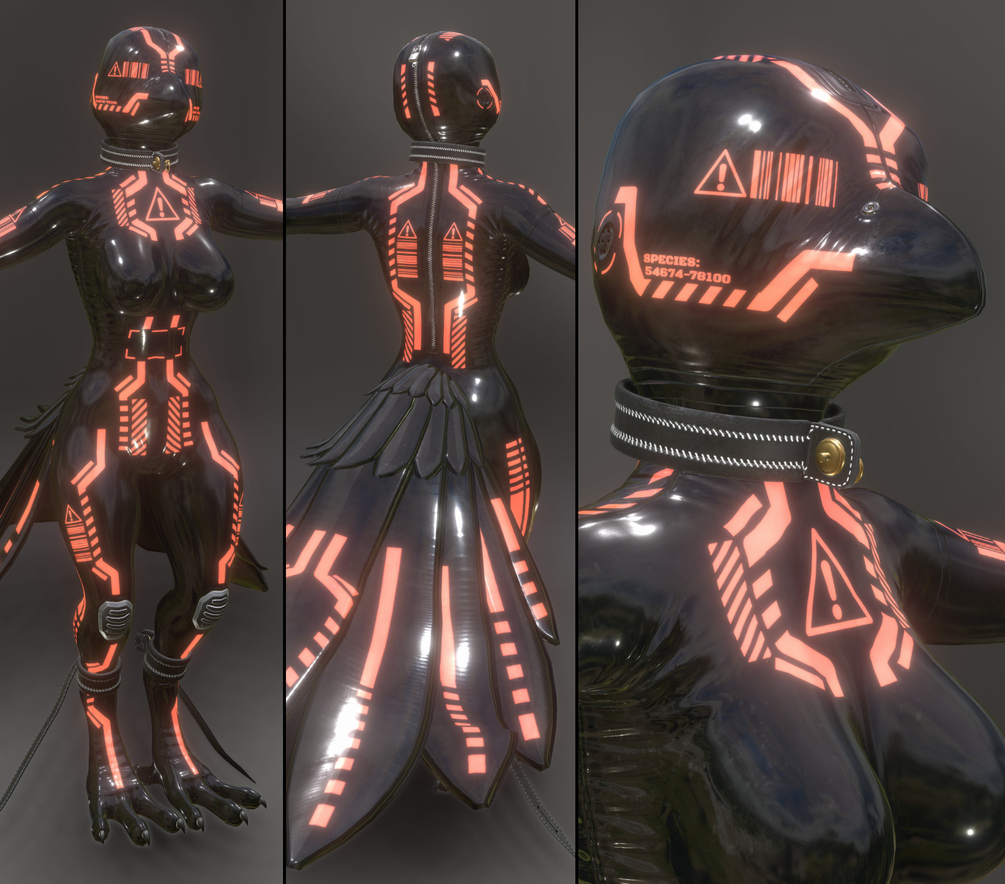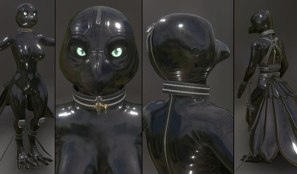 A Latex Outfit & Hoods Made for Kudalyn's Avian avatar ( https://kudalyn.gumroad.com/l/eltGi )
