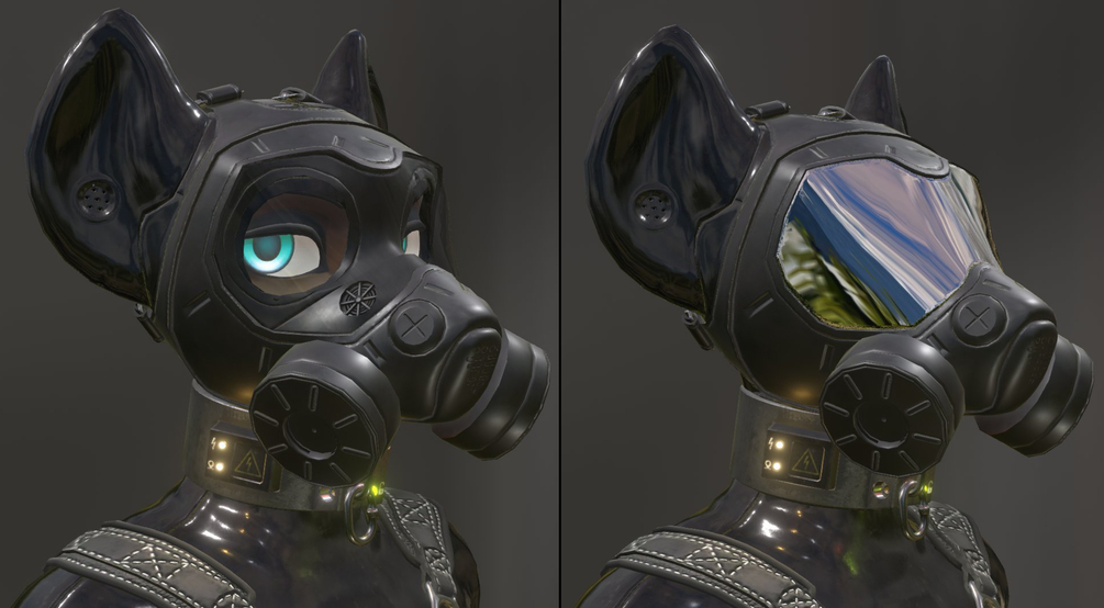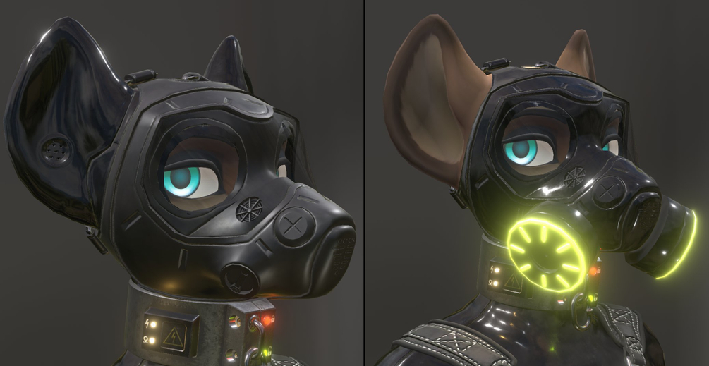 The Gas Mask has avatar matching blendshapes for that perfect fit, plus extra ones to make it fit over the hood (sold separately)