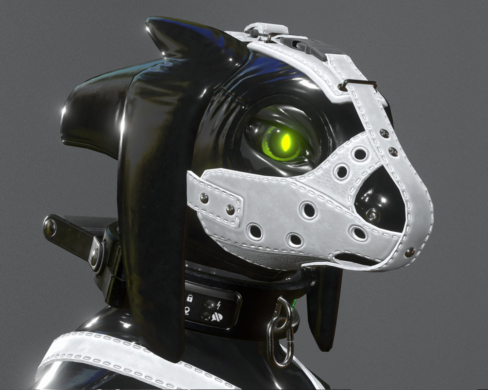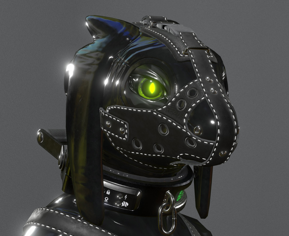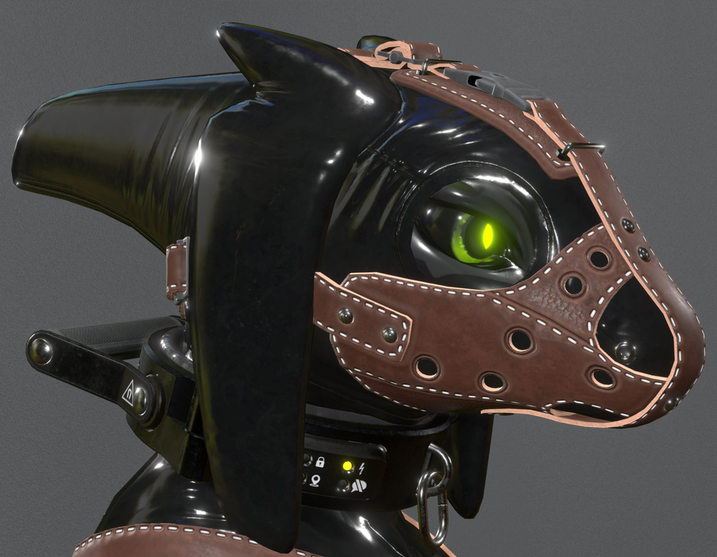 A Leather Muzzle Made for Tokyozilla's Neorca avatar ( https://tokyozilla.gumroad.com/l/Neorca )