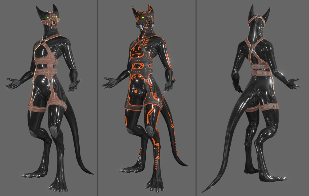 A Leather Harness Made for Orange Nova Avatars' Skadi Sergal avatar ( https://krample.gumroad.com/l/SkadiSergal )