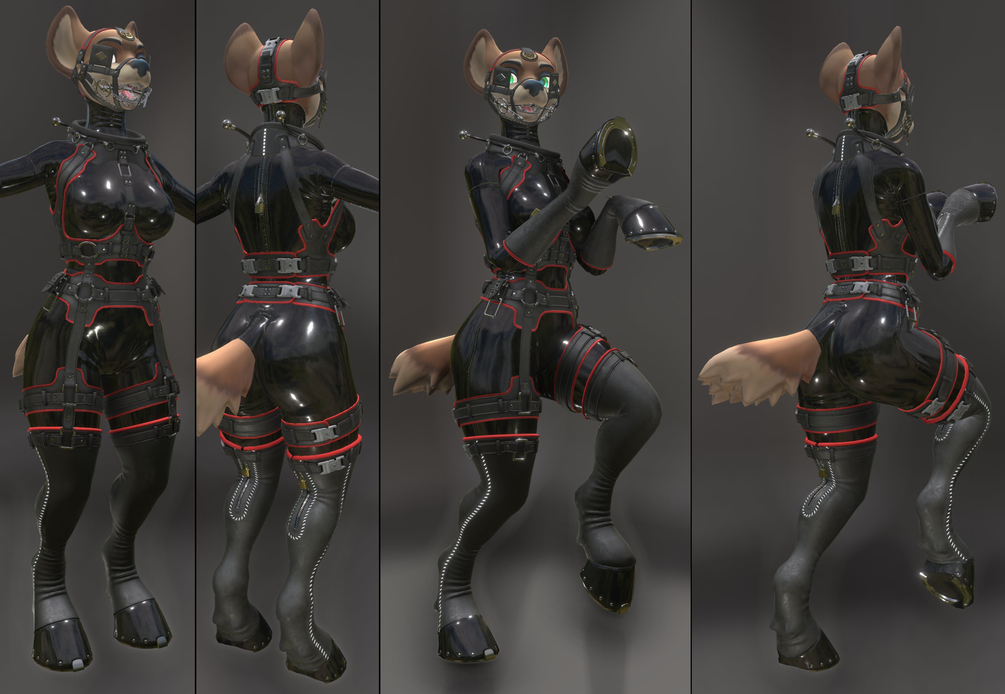 Latex Catsuit in the images is from: bondutopia.gumroad.com/l/Hyenid_Hood