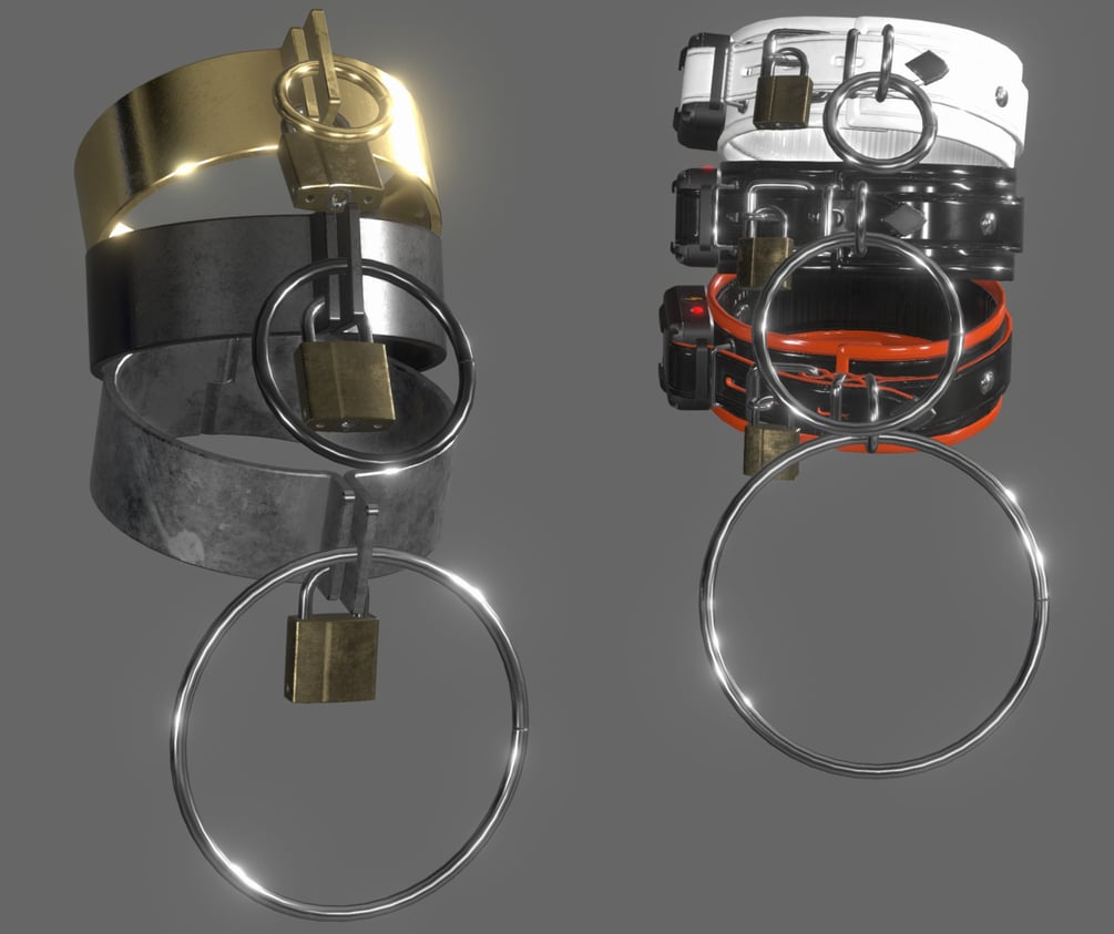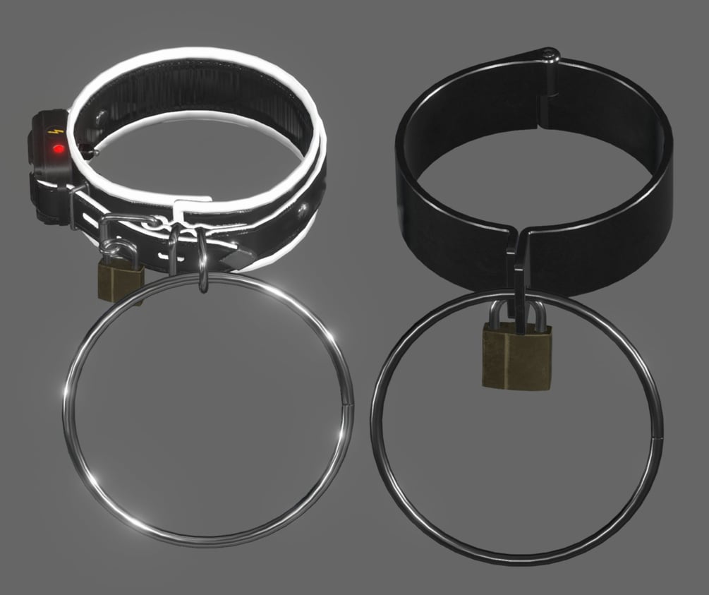 A Pair of Large leashing Ringed Collars for the Unity3D based VR games (Resonite & VRChat)