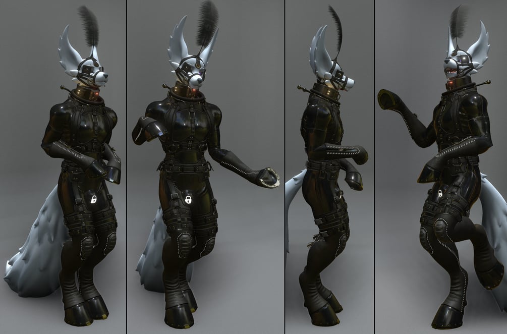 Pictured latex outfit is from: https://bondutopia.gumroad.com/l/izxyb And collar is from: https://bondutopia.gumroad.com/l/hnjdy