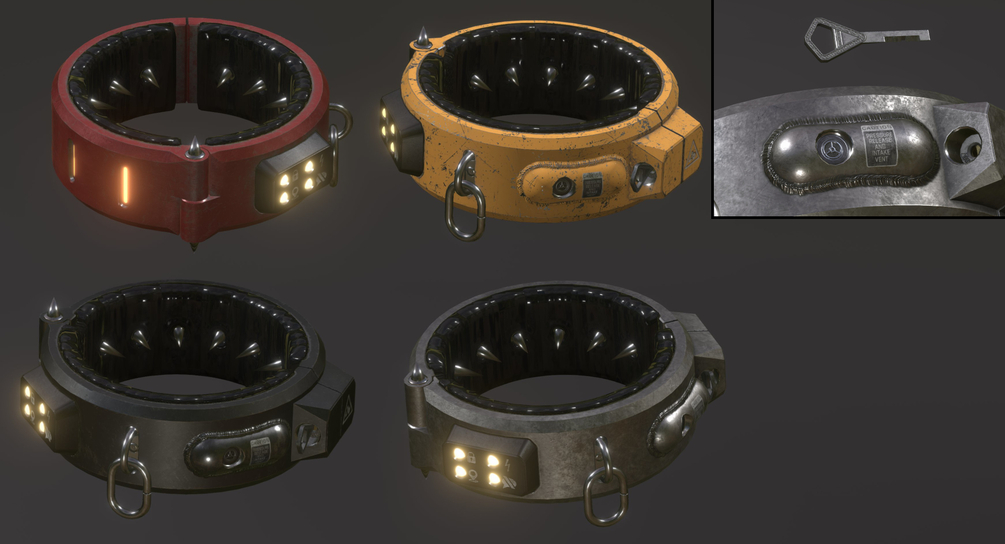 - 1x Pain Collar in futuristic style (Bare Steel, Dark Metal, Default Prison Orange & Coated Metal (Red) texture variants)
