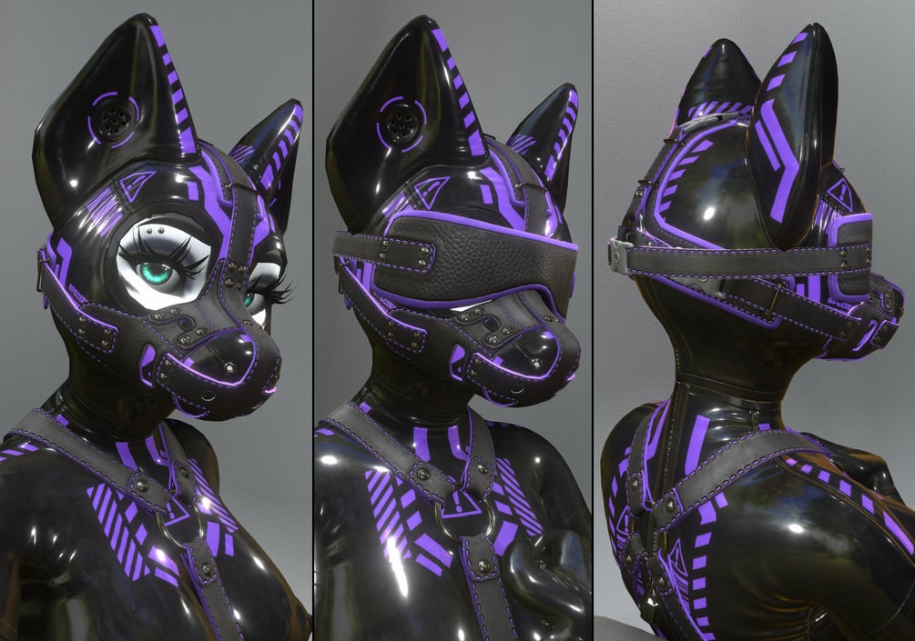 A Leather Muzzle & Blindfold Made for FoxiPaws' Juniper avatar ( https://foxipaws.gumroad.com/l/Juniper )
