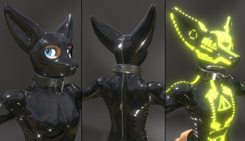 A Latex Outfit & Hoods Made for Odo's Foxxo ( odo.gumroad.com/l/Foxxo )