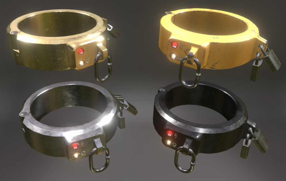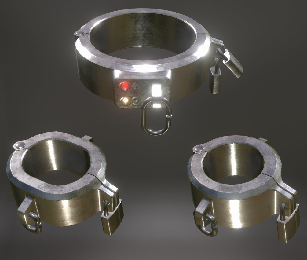 Solid steel Heavy Shock Collars and Cuffs for the Unity3D based VR games (NeosVR & VRChat)
